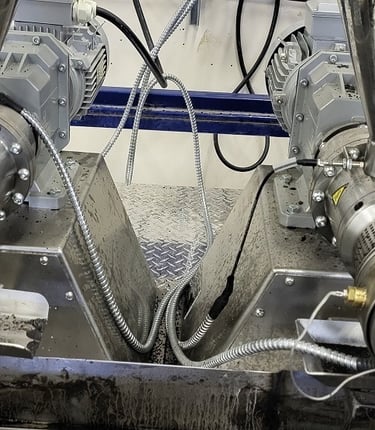 The system features a variable speed drive, allowing for adjustable operational speeds. Designed for heavy-duty use, it is capable of continuous operation around the clock. The product comes with a limited one-year warranty and is constructed from food-grade stainless steel, ensuring safety and durability in food processing applications.